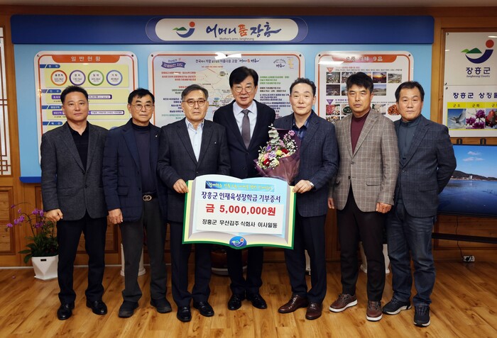 [장흥=장영채 기자] (재)장흥군인재육성장학회는 5일 장흥군무산김주식회사에서 500만원의 장학금을 기탁했다고 밝혔다.