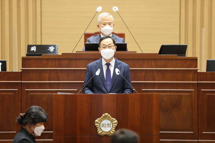 명현관 군수는 23일 해남군의회 정례회 시정연설을 통해 민선7기 군정성과를 설명하고, 2022년도 군정 운영의 방향을 제시했다.