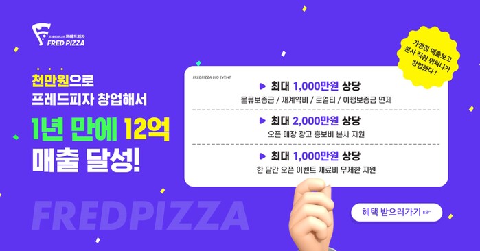 업체 관계자는 “프레드피자 창업을 희망하는 예비창업자들이 비용에 대한 부담없이 안정적으로 창업할 수 있도록 이번 프로모션을 기획했다”며 “창업 과정에서의 불필요한 비용은 줄이고 최신 트렌드에 맞는 메뉴구성, 전폭적인 마케팅 지원으로 매출을 상승시켜 소자본으로 창업을 희망하는 분들께 많은 도움이 되고자 한다”고 전했다.