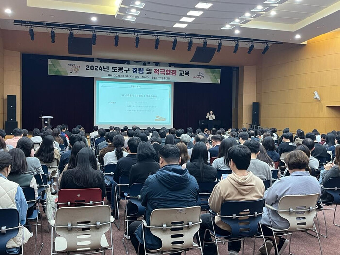 [시민일보 = 문민호 기자] 도봉구(구청장 오언석)는 최근 도봉구청 2층 선인봉홀에서 구 직원을 대상으로 ‘2024년 도봉구 청렴 및 적극행정 교육’을 실시했다.