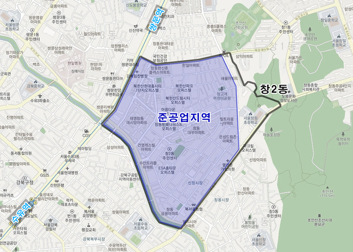 | ▲ 도봉구 창2동 및 준공업지역 지도 이미지. (사진제공=도봉구청) |