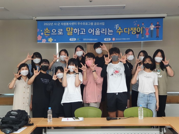 한편, 합천군 자원봉사센터는 「손으로 말하고 어울리는 수(手)다쟁이」 프로그램으로 지난 5월~6월에 초등학생 방과후 학교 수어교실를 6회 운영하고, 5월 20일 수어홍보 캠페인을 합천읍에서 진행한 바 있다