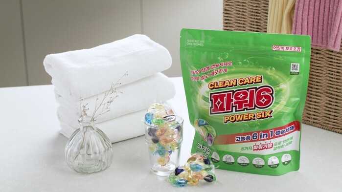 고농축 캡술세제 '클린케어 파워6'는 간편하게 한 알의 캡슐만 사용해도 강력한 세탁력으로 얼룩을 깨끗하게 제거 가능한 제품으로 오랫동안 유지되는 향기 지속력이 특징이다.