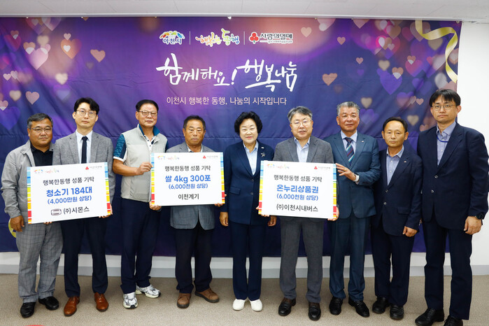 이날 ▲㈜이천시내버스는 온누리상품권 600매(600만원 상당) ▲㈜시몬스는 청소기 184대(4000만원 상당) ▲이천계기는 햅쌀 4kg 300포(600만원 상당)를 각각 기탁하며 이웃사랑을 실천했다.