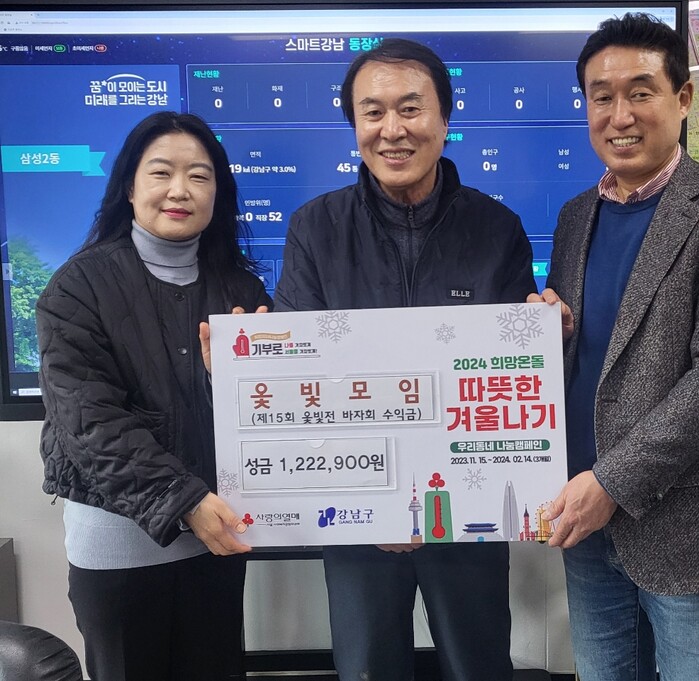 [시민일보 = 이대우 기자] 서울 강남구(구청장 조성명) 삼성2동이 최근 손대현 옻칠장 및 제자들로부터 ‘2024 희망온돌 따뜻한 겨울나기’ 성금을 전달 받았다.