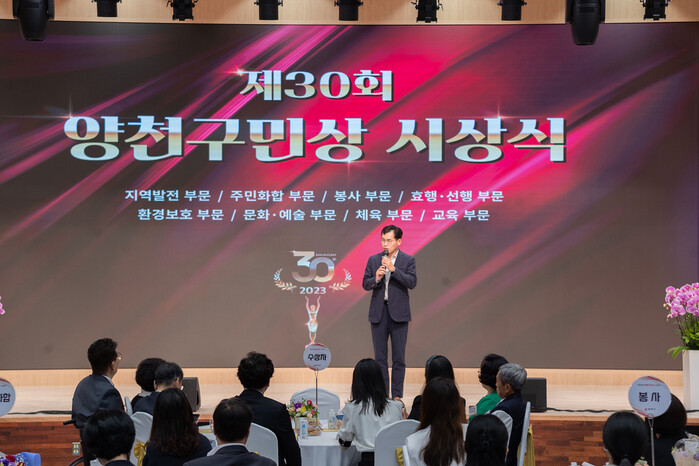이기재 구청장은 "이웃과 지역을 위해 보이지 않는 곳에서 묵묵히 애쓰시는 구민들이 많다"며 "이 상은 43만명 양천구민의 이름을 걸고 드리는 만큼 한 분 한 분 찾아서 명예와 자긍심을 높이고 구민들에게 귀감이 될 수 있도록 그분들의 메시지를 널리 알릴 것"이라고 말했다.