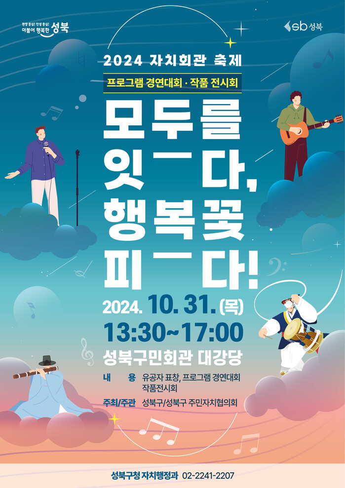 [시민일보 = 문민호 기자] 서울 성북구(구청장 이승로)와 성북구 주민자치협의회가 오는 31일 성북구민회관 대강당에서 20개 동 자치회관 수강생들이 한자리에 모여 즐기는 ‘2024 자치회관 축제’를 개최한다.