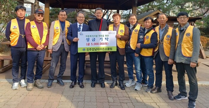 주강남라이온스클럽(회장 김용태)은 6일 진주시복지재단(이사장 이성갑)에 사회복지시설 운영 지원에 사용해 달라며 성금 500만 원을 기탁했다.