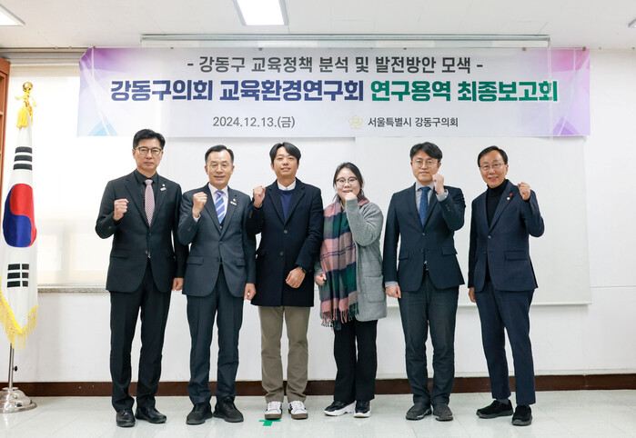 [시민일보 = 이대우 기자] 서울 강동구의회 의원연구단체 교육환경연구회가 최근 하반기 연구용역을 완료하고 강동구의회 세미나실에서 최종보고회를 개최했다.