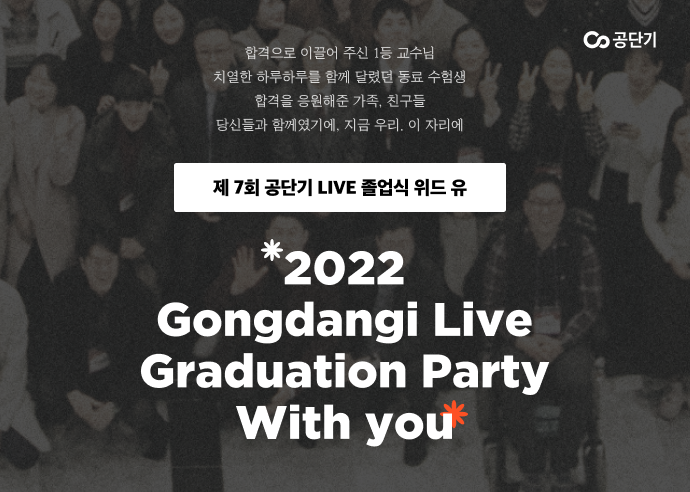 올해로 7회째를 맞은 공단기 졸업식은 매년 500 여 명의 합격생들이 참가해 수험 기간 동안의 노고를 위로하고 합격을 축하하는 의미로 매년 개최해왔다. 2022년 졸업식은 코로나 상황을 고려해 공단기 라이브 포맷으로 진행된다.