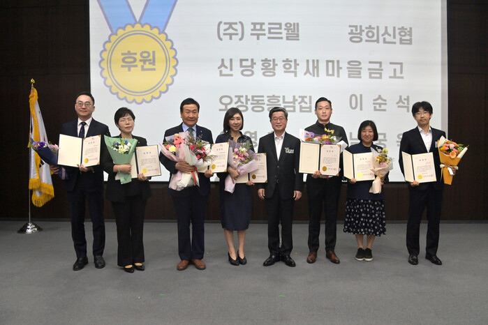 지역내 저소득 취약계층을 위해 식료품 등을 정기후원하며 지역사회 나눔문화 확산에 기여한 ㈜푸르웰, 광희신협, 신당황학새마을금고, 오장동흥남집이 공로를 인정받아 표창을 받았다.