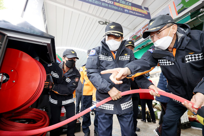 현장에 소방대원들과 함께 출동한 신 의장은 부평깡시장과 부평종합시장을 돌며 시장 내 비상소화장치 점검과 사용법을 배우고 명예소방관의 임무를 익혔다.