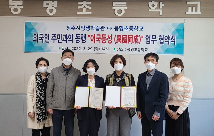 청주시평생학습관은 지난 29일 외국인 학부모와 지역주민 대상으로 평생학습 프로그램 추진을 위해 봉명초등학교와 업무협약을 체결했다.