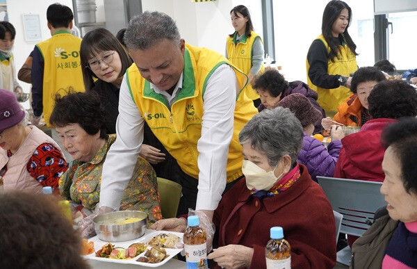 | ▲ S-OIL(대표 안와르 알 히즈아지, 가운데) 대한사회복지회 염리종합사회복지관 취약계층들에게 ‘사랑의 떡국 나누기’ 행사 |