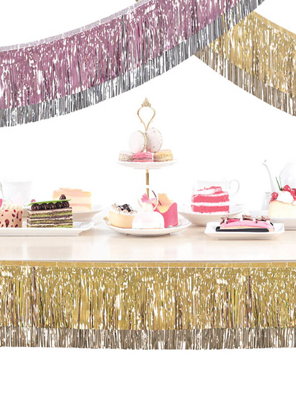 ‘태슬 파티 가랜드’는 여러 개를 연결하거나 겹쳐서 벽이나 테이블 등 원하는 위치에 연출하면 화려한 파티 분위기를 낼 수 있다. 컬러는 골드와 핑크 2종류이다.