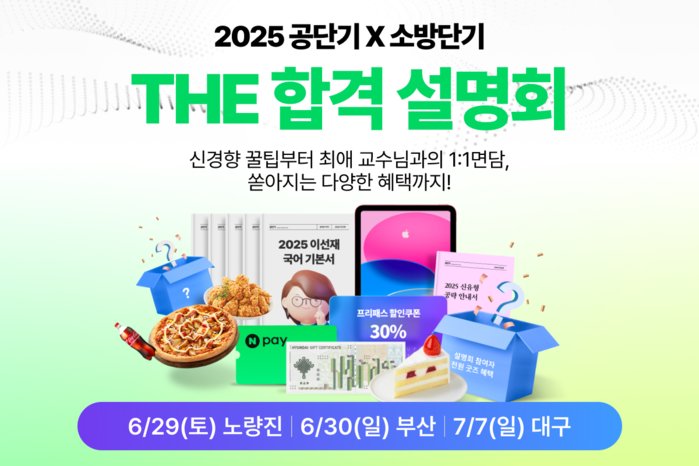 또한, 공단기와 소방단기는 설명회의 적극적인 참여 유도를 위해 ▲사전 알림 신청 이벤트 ▲Q&A 사전 질문 이벤트 ▲설명회 참여 인증 이벤트를 마련했다. 이벤트 참여자에게는 도미노피자, 파리바게트, 맘스터치, 네이버페이 포인트 등을 추첨을 통해 지급한다.