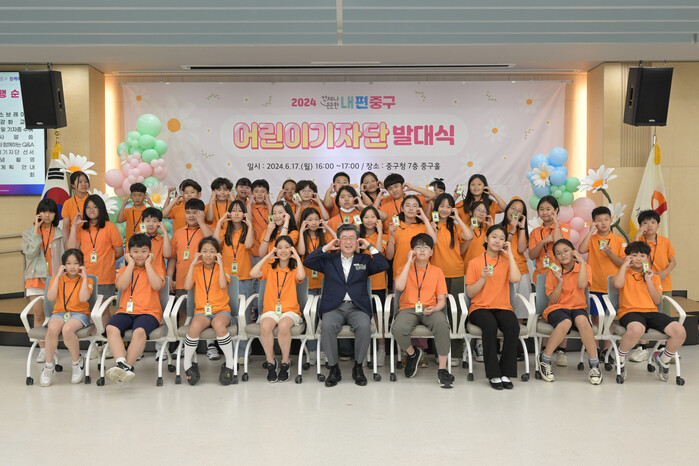 [시민일보 = 여영준 기자] 서울 중구(구청장 김길성)가 지난 17일 중구홀에서 어린이 기자 38명, 학부모 40명이 참석한 가운데 ‘제1기 내편중구 어린이기자단’ 발대식을 개최했다고 밝혔다.