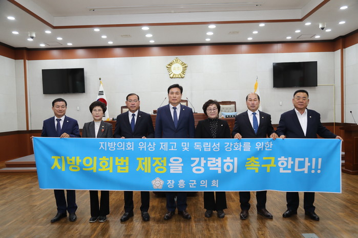 장흥군의회는 성숙한 지방자치 실현과 지방의회 위상 확립 및 독립성 강화를 위해 ▲실적적인 독립성이 보장된 의회 조직와 운영 ▲조직관리권과 예산편성권이 포함된 지방의회법 제정을 강력히 촉구했다.