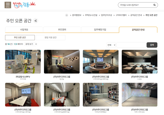 [시민일보 = 이대우 기자] 강동구(구청장 이수희)는 최근 고덕비즈밸리 입주가 본격화되면서 입주 기업들의 지역사회 기여가 활발해짐에 따라, 구청 홈페이지에 입주 기업들이 제공하는 공적 공간 안내 콘텐츠를 신설했다고 밝혔다.