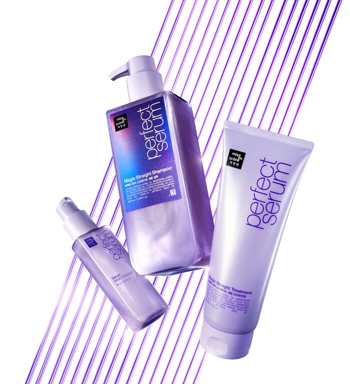 곱슬거리는 모발과 잔머리를 차분하게 정돈해 슬릭한 스타일 연출을 도와주는 퍼펙트 매직 스트레이트 라인은 샴푸, 트리트먼트, 세럼으로 선보인다. 라인 전체에 미쟝센만의 오로라 광채 입자를 담아 모발의 표면을 정돈하고 반짝이는 광채를 만들어준다.