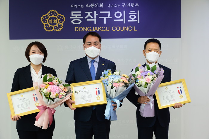 [시민일보 = 여영준 기자] 서울 동작구의회는 최근 전갑봉 의장, 김광수 의원, 신민희 의원이 ‘2022년 서울시구의회의장협의회 지방의정대상'을 받았다고 밝혔다.