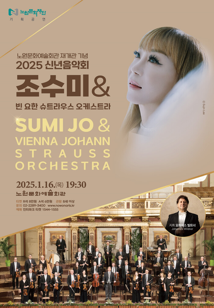 2025 신년음악회의 입장권은 오는 12일 오전 10시부터 노원문화재단 홈페이지와 인터파크에서 예매 가능하며 R석 8만원, A석 6만원에 제공된다. 구민은 20% 할인 혜택을 받을 수 있다.