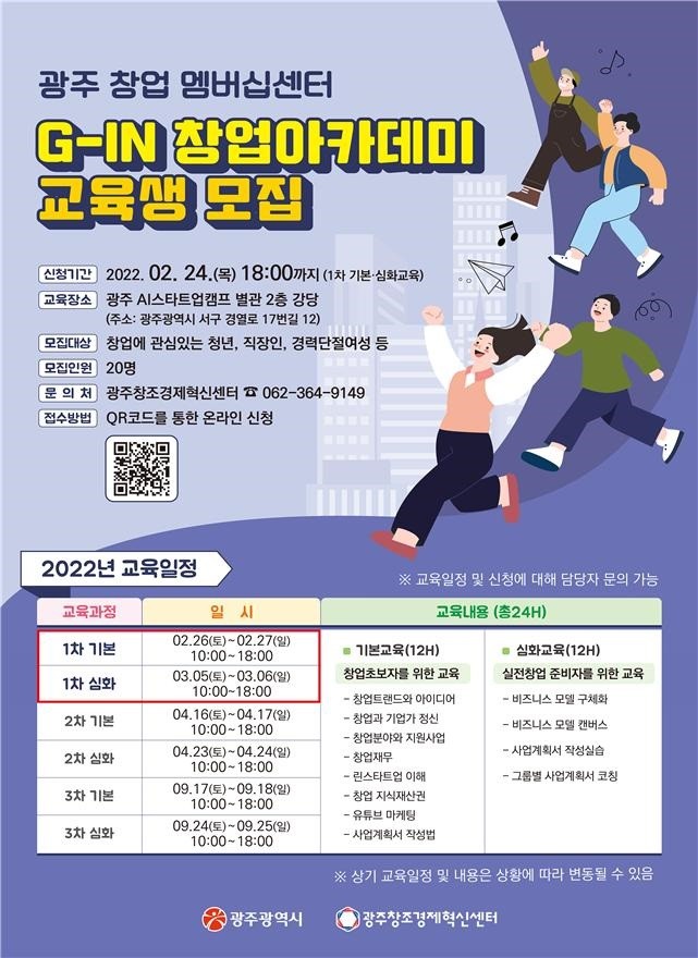 ‘G-IN 창업아카데미 교육’은 (재)광주창조경제혁신센터 주관으로, 창업을 시작하려는 시민들에게 창업의 진입장벽을 낮춰주고 창업역량과 경쟁력을 갖춰 창업에 자신감을 심어주기 위해 마련된 창업 교육이다. 특히 창업 초보자를 위한 기본교육과 창업 준비자를 위한 심화교육 과정으로 운영된다.