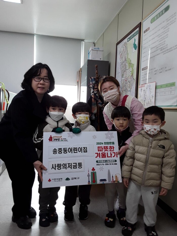 [시민일보 = 홍덕표 기자] 서울 강북구(구청장 이순희) 송중동에 소재한 구립탐구어린이집과 구립송중동어린이집이 최근 사랑의성금이 담긴 저금통을 송중동 주민센터에 기탁했다.
