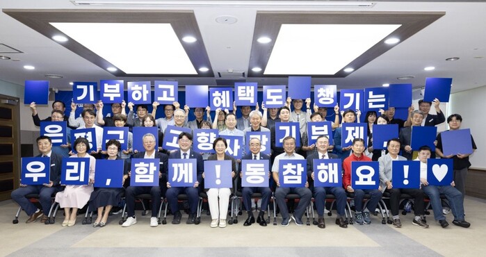 이번 행사의 마지막은 카드섹션으로 장식됐다. 고향사랑 기부를 홍보하고 동참하는 내용의 퍼포먼스를 카드섹션으로 표현해 성과공유회를 마무리했다.