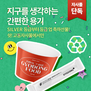 교동식품의 지구를 생각하는 간편식 용기 굿즈는, 현시점 기준 교동식품 자사몰 SILVER등급 달성 시 10세트, GOLD 등급 달성 시 20세트, VIP 등급 달성 시 30세트 1회 증정된다.
