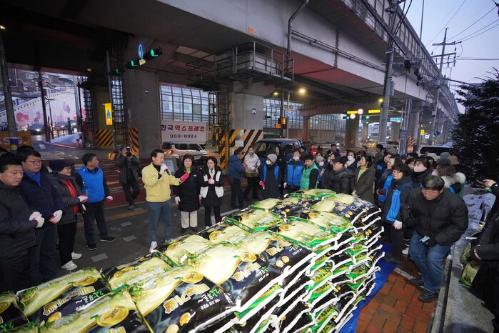 올해도 10일 새벽 100여명이 동참해 쌀을 내렸다.