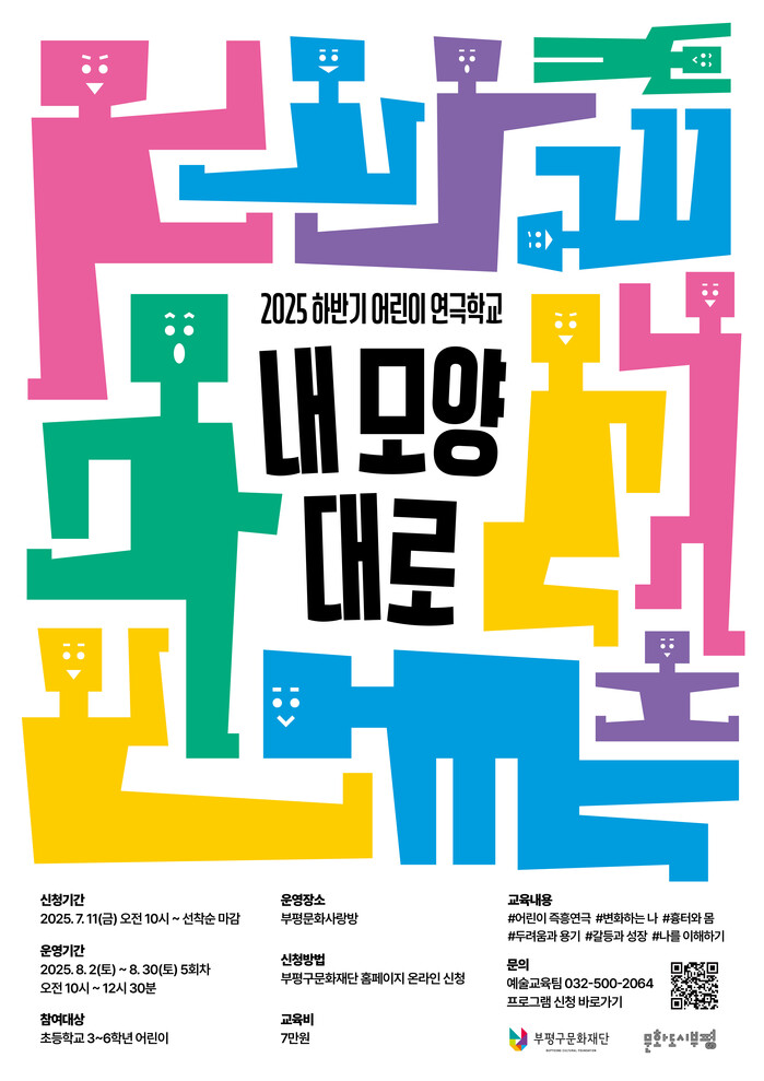 [인천=문찬식 기자] 인천 부평구 문화재단이 다음 달 진행되는 어린이 연극학교 신규 프로그램 ‘내 모양대로’의 참여자를 모집한다고 14일 밝혔다.