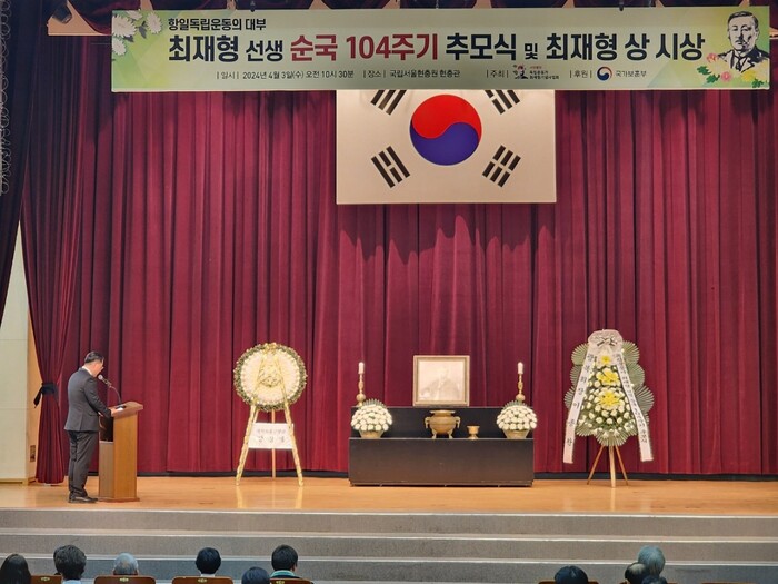 [시민일보 = 이대우 기자] 서울지방보훈청장은 지난 3일 국립서울현충원 현충관에서 열린 ‘최재형 선생 순국104주기 추모식’에 참석하였다.