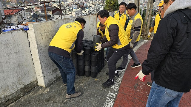 이날 밀양라이온스클럽 회원 10여 명은 쌀쌀한 날씨에도 구슬땀을 흘리며 어려운 이웃을 돕기 위한 연탄 나눔 봉사에 참여했다.