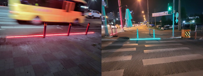 특히 바닥신호등을 통해 보행자의 오출발, 지연출발 등의 안전사고 요인을 방지하는 한편 야간 조명 역할로 도심 경관 개선 효과도 거둘 수 있을 것으로 기대된다.
