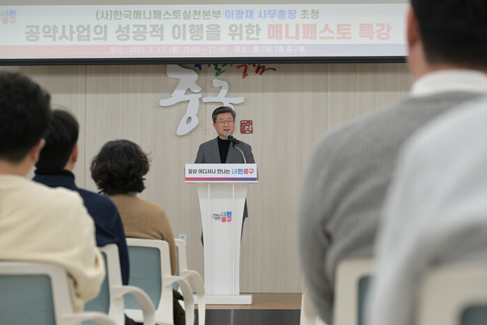 [시민일보 = 여영준 기자] 서울 중구(구청장 김길성)가 지난 17일 중구청에서 100여 명의 직원을 대상으로 <2025년 매니페스토 특강>을 개최했다.