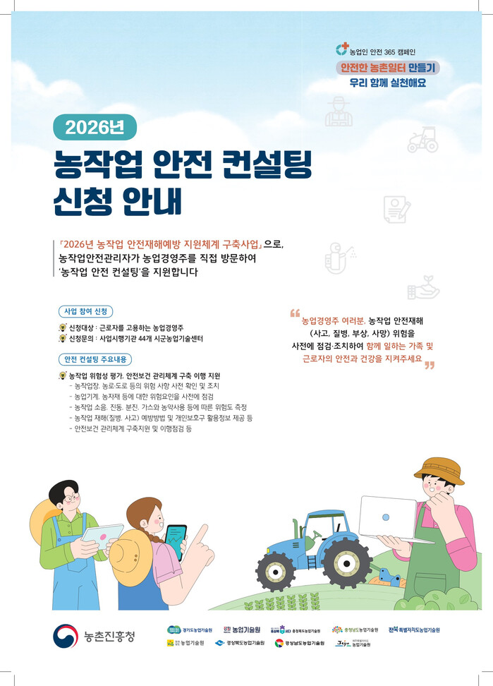 이번 컨설팅은 '2026년 농작업 안전재해 예방 지원체계 구축사업'의 일환으로 추진된다.