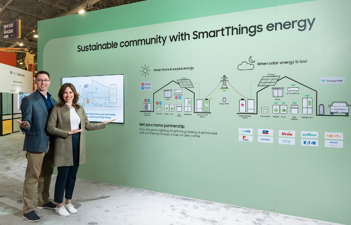 삼성전자는 태양광 패널 전문업체인 '한화 큐셀', 가정용 태양광 인버터 브랜드 'SMA'을 비롯해 에너지·유틸리티·IT·전자 등 다양한 업체와의 협업을 확대하며 미래형 친환경 주거형태인 '넷 제로 홈(Net Zero Home)' 구현을 위해 노력하고 있는 점도 소개한다.