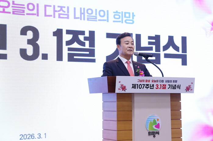 [의왕=송윤근 기자] 경기 의왕시가 2026년 3월1일, 제107주년 3·1절을 맞아 시청 대회의실에서 시민들과 함께 3·1운동의 숭고한 정신을 기리는 기념식을 개최했다.