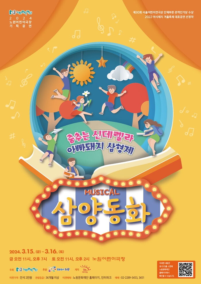 노원문화재단(이사장 강원재)은 3월 15일(금), 16일(토) 양일간 노원어린이극장 기획공연으로 입체 동화 뮤지컬 <삼양동화>를 공연한다.