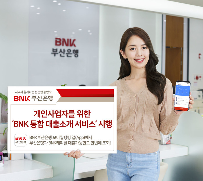 [시민일보 = 여영준 기자] BNK부산은행은 3일 개인사업자를 위해 부산은행과 BNK캐피탈 대출상품을 한 번에 조회할 수 있는 ‘BNK 통합 대출소개 서비스’를 시행한다고 밝혔다.