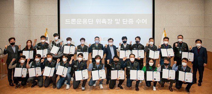 | ▲ 광주광역시, 드론운용단 교육 및 발대식 후 기념촬영 / 사진=광주광역시 제공 |