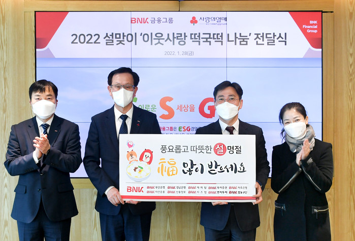 BNK의 ‘사랑의 떡국떡’ 행사는 복지시설 등에서 생활하며 명절에도 가족과 함께하지 못하는 이웃과 온정을 나누기 위해 진행하는 사회공헌 프로그램으로 지역의 나눔 문화 확산을 위해 2019년부터 매 명절마다 추진 중이다.
