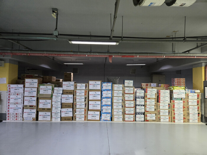 그 결과 △즉석밥 2300개, △컵라면 2500개, △간편죽 1248개, △육포 195개 △참치캔·햄 420개 △물티슈 300개, △무릎담요 20개, △치약·칫솔세트 185개, △핫팩 5,200개, △속옷 900벌, △양말 2700개, △성인용 기저귀 2800개, △인공눈물 1200개 △크레파스 1,000개 등 3500만원 상당의 물품들이 빠른 속도로 모아졌다.