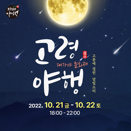 고령을 대표하는 문화재인 지산동 고분군의 야관경관조명을 설치하고 야간 전망대를 운영하고 관광해설사와 함께 달빛 아래 지산동 고분군 길을 걷는 ‘달빛 고분 산책’트래킹 코스에 대가야 역사 인물을 배치하고, 군립가야금단이 연주하는 특별공연과 블랙라이트 ‘시간의 문’ 공연 등 대가야를 문화재를 활용한 공연도 펼쳐질 예정이다.