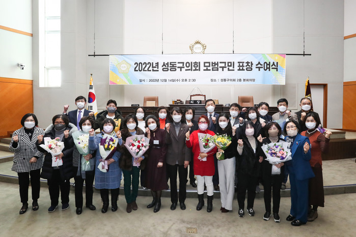 [시민일보 = 홍덕표 기자] 서울 성동구의회(의장 김현주)가 최근 구의회 본회의장에서 다양한 봉사활동을 통해 주민화합과 지역사회 발전에 헌신·노력해온 구민을 발굴·격려하는 '모범구민 표창 수여식'을 개최했다.