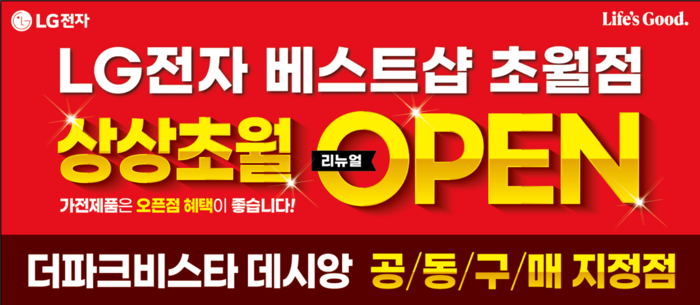 LG전자 베스트샵 초월점 관계자는 “이번 리뉴얼 오픈은 단순한 매장 새단장을 넘어, 입주 고객들이 실제로 체감할 수 있는 상상초월 혜택을 제공하는 데 중점을 뒀다”며 “더파크더비스타 데시앙 입주 고객을 비롯해 가전 구매를 계획 중인 고객들에게 만족도 높은 쇼핑 경험이 될 것으로 기대한다”고 말했다.