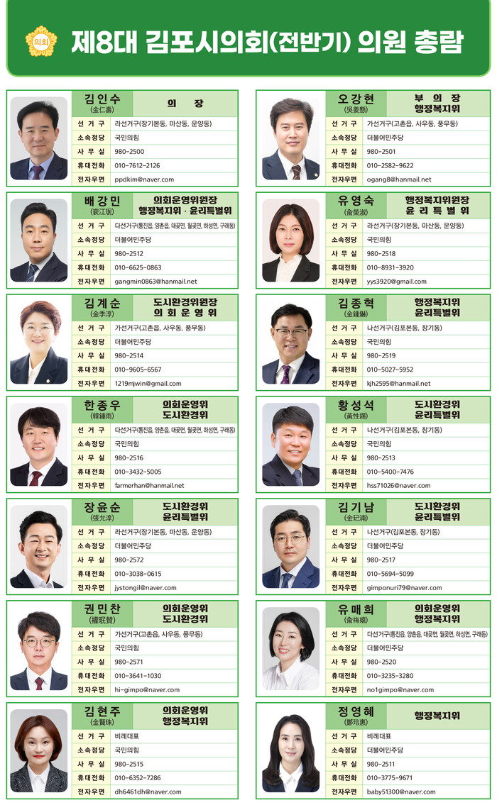 [김포=문찬식 기자] 경기 김포시의회는 소속의원 현황을 간략히 소개한 의원 총람을 제작해 배부하고 있다고 밝혔다.