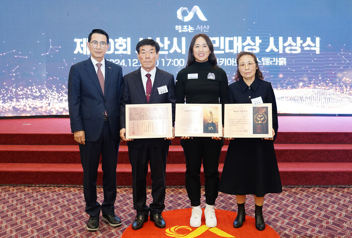시는 지난 9일 베니키아 호텔에서 제30회 서산시 시민대상 시상식을 개최하고 수상자로 선정된 김선호씨와 김인숙씨, 양희영씨에게 상패를 전달했다고 밝혔다.