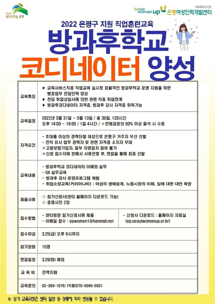 | ▲ ‘방과후학교 코디네이터’ 양성과정 수강생 모집 안내문 (사진제공=은평구청) |